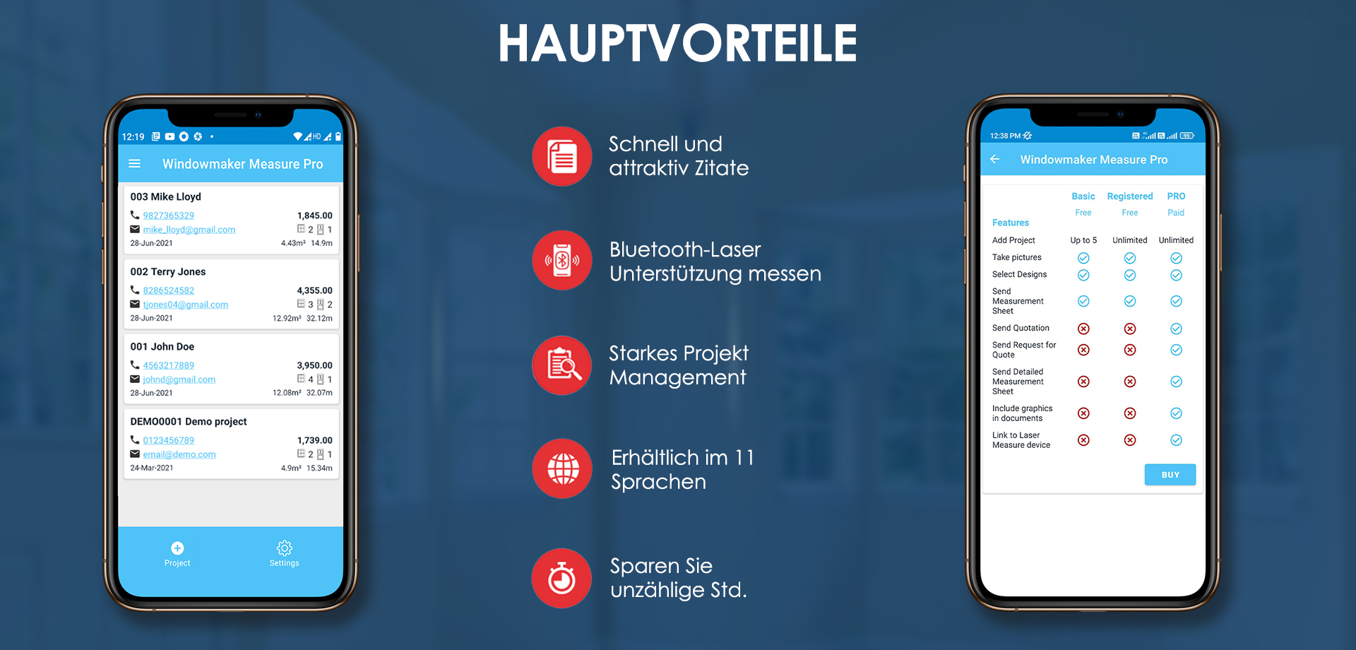 Verwenden Sie Lasermessungen, um eine Messung sofort in Ihrem Gerät zu speichern. Versenden Sie die Angebote von vor-Ort.
