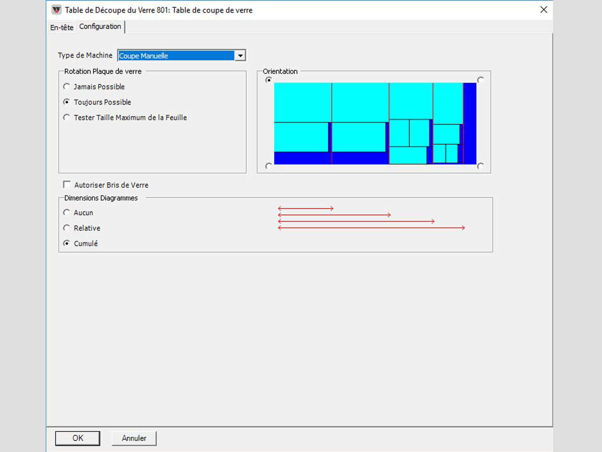 - Une installation pour optimiser le rendement en verre en organisant automatiquement la séquence de découpe des pièces