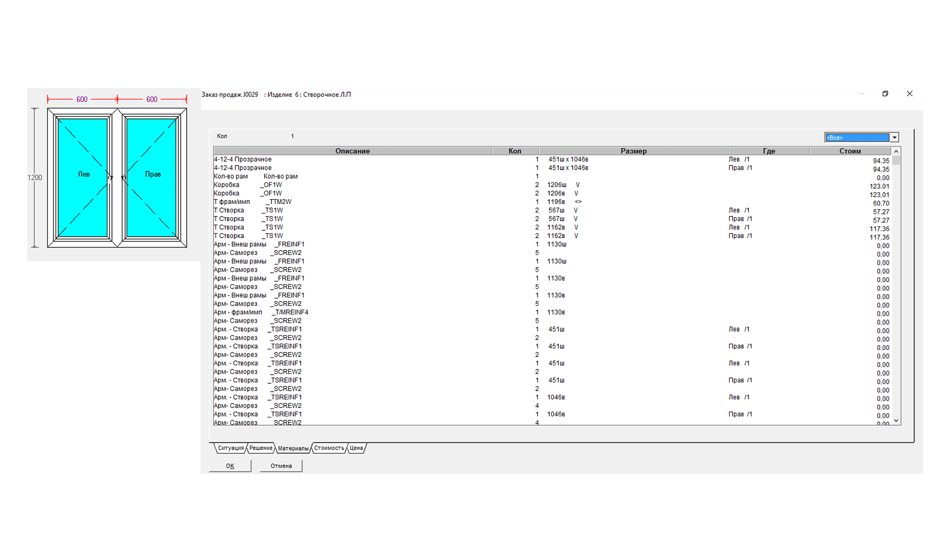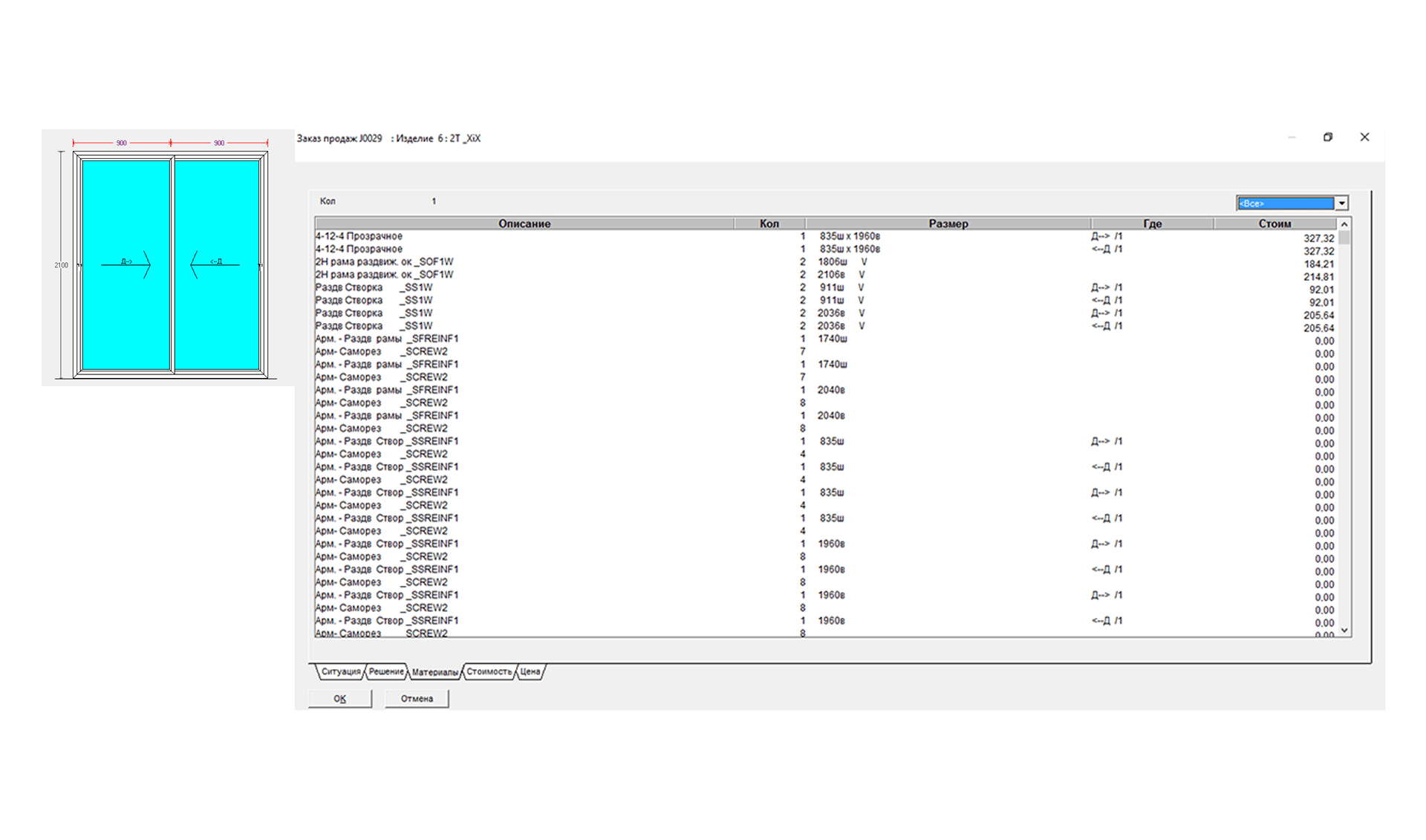 Динамически вычисляет спецификацию и цену в процессе проектирования изделия.