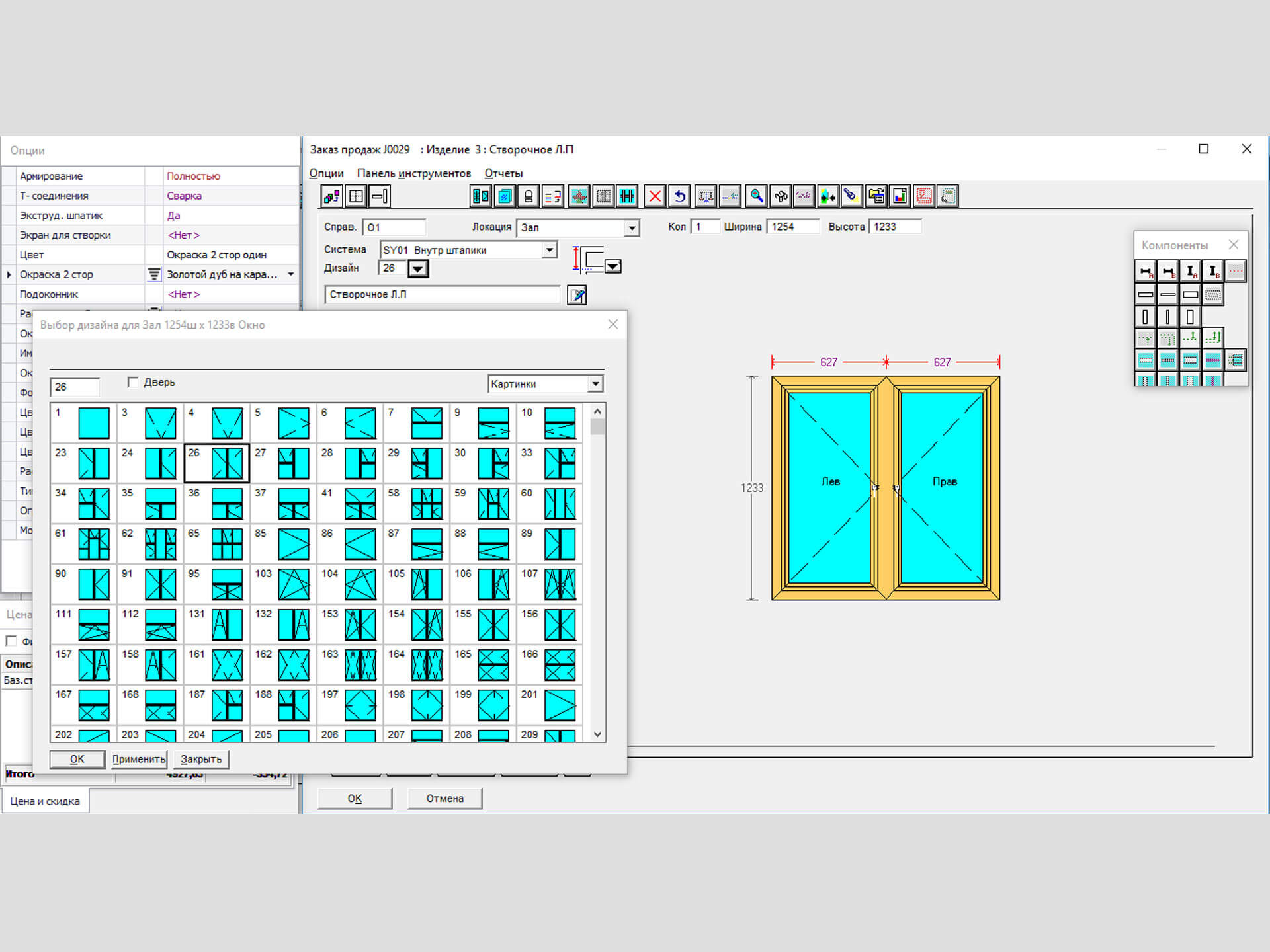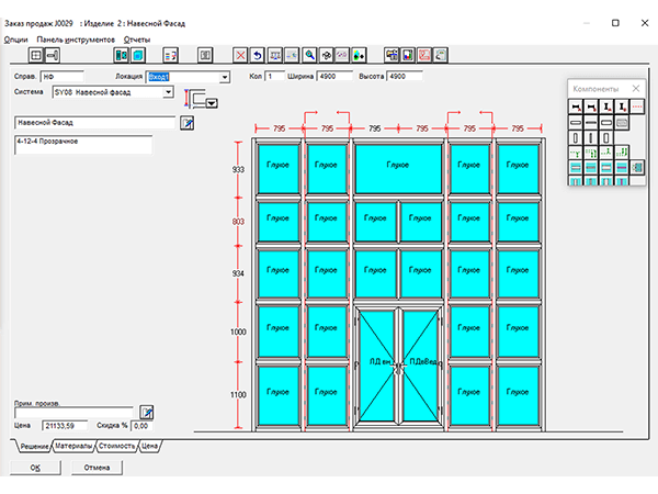 Выберите из библиотеки стандартных изделий или создайте свое уникальное изделие, используя интерфейс перетаскивания, чтобы включить компоненты и типы открываний.